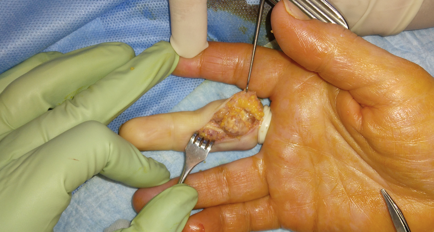 Ha una consistenza dura, non sono solitamente dolenti e crescono abbastanza velocemente fino a dare segno di sè in maniera indiretta per la presenza di un aumento localizzato di dimensioni del dito con aumentata consistenza.
